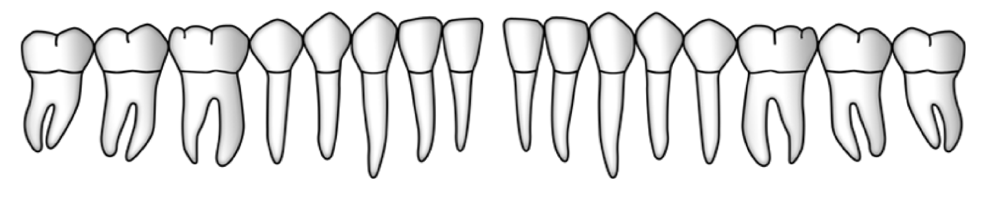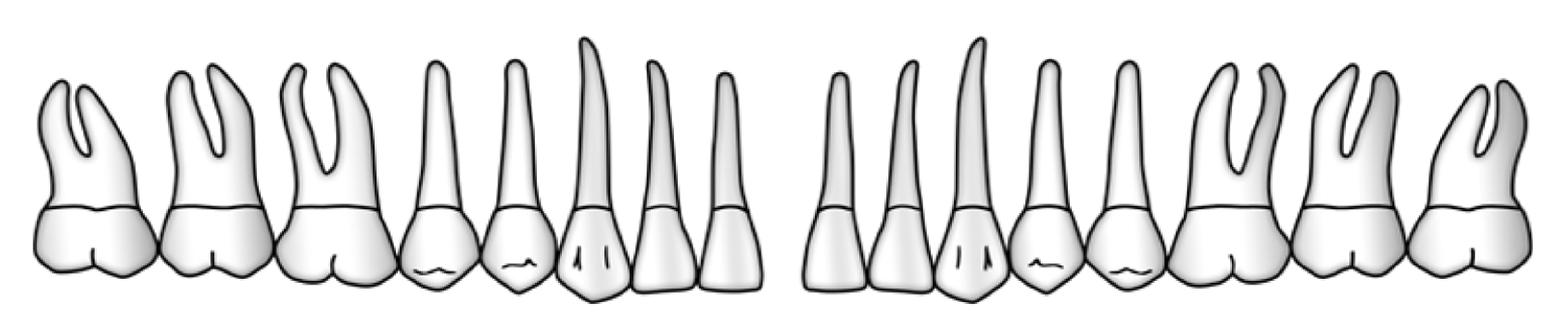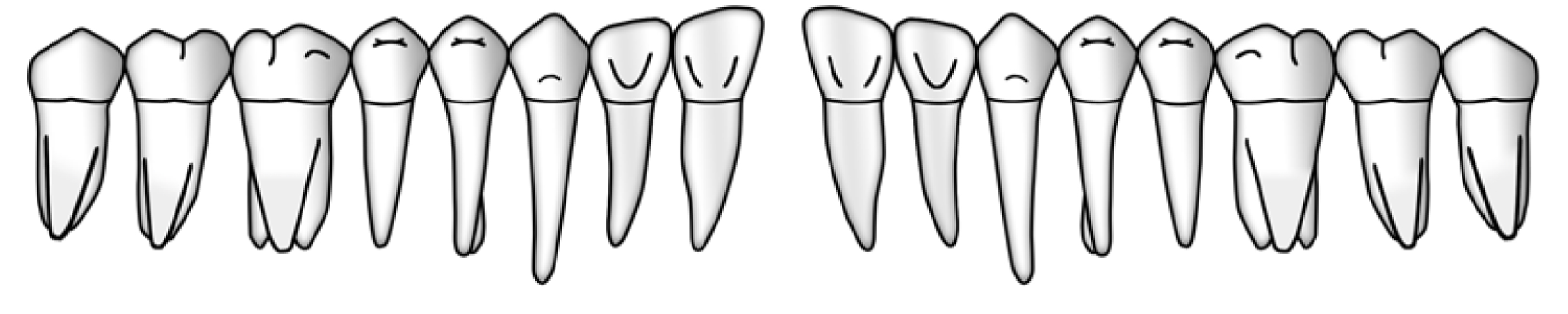 Le forcazioni dei molari e dei primi premolari nella mascella superiore vengono esaminate con una sonda per forcazioni. La componente orizzontale della profondità di penetrazione totale è suddivisa in gradi da 0 a 3 secondo i seguenti criteri (Hamp et al., 1975).